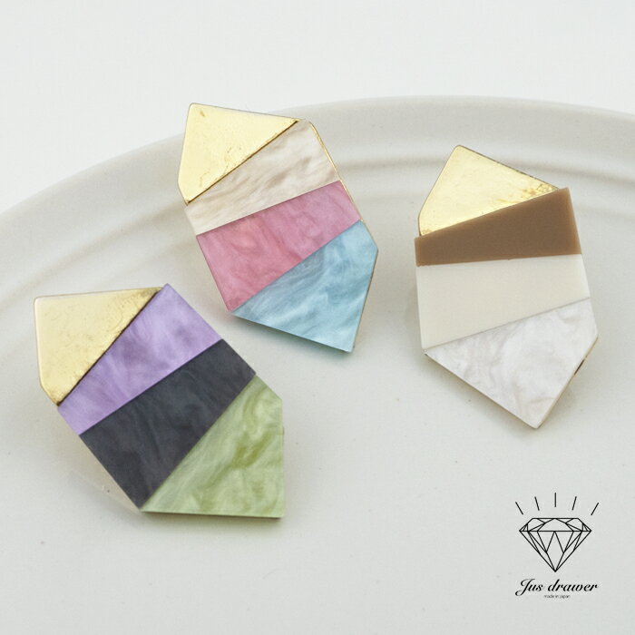 送料無料 ピアス レディース 金属アレルギー対応 べっ甲 バイカラー マーブル カラー選択 水色 ライトブルー ブルー ホワイト グレー ゴールド 大人 可愛い シンプル カジュアル 奥平順子