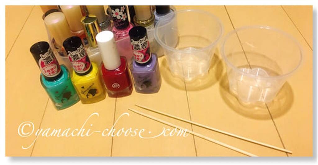 我が家はプリンの空き容器と100均購入してたマニキュア、竹串を使ったよ